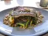 Nice environment and very good service. A bit on the pricy side. We ordered the Surf & Turf. Ribeye and scallops. The steak was very good, but the scallops were cold and had a metalic taste, at $10 a scallop I was very disappointed. For dessert we had the Lemon Tart. This was the best taste we had. We would return to Plank just for the Lemon tart.