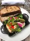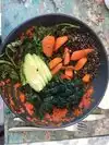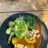 I am a carnivore so finding food on a plant based menu is always hard for me. They do a nice job making sure the food isn't too heavy with nuts and fats. The outdoor seating is lovely, although I was hoping for more creativity in the inside Beyond just slapping on a fresh coat of paint vs the previous Resturant. Our server was really bad, had a real attitude like serving was beneath him. It really took away from the experience.