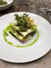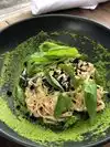 I really wanted to like the food at PFW but it didn’t deliver. Nice outdoor patio and dining room. The waiter was ok but made some mistakes along the way that leave you wondering. He helped us decant a wine, and then he proceeded to pour another open bottle of wine on top of the decanted wine in the glass. I guess he was distracted but he was very apologetic as he ruined a $$$ glass of wine Raw lasagne 7/10 nut cheese ricotta was not very tasty. Mushrooms 7/10 polenta not good Cavatelli 9/10 decent sauce and well prepared Nut cheeses as app were enjoyable but the chèvre was tasteless 7/10 Brussel sprouts 7/10 I expected more. We were two couples and had a great time in the rustic setting outside despite the less then interesting food. Will be back to try this innovative spot again.