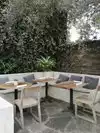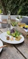 We adored this cute restaurant and had a table outside for lunch which was wonderful. Even though it was busy it was quiet and relaxing. Lots of fairy lights in the garden so imagine it would look magical at night. Food was amazing! Service was very attentive and charming. So glad we found this place.