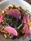We LOVE trying Veg and Vegan spots in and around LA when we visit from Montana such as Crossroads + many other superb places. Food was meh at Plant (will note the delicious hummus) but this place is a mess. We ordered "another round" and it took over 20 min. (meanwhile none of the plates from first or second courses were ever cleared - maybe LA'rs only have one course IDK but the table was getting smaller). After someone (not waiter) noticed we never got our drinks, they said they were "on it." Right, 10 min later the round came out: a mocktail and a glass of red wine. Within minutes my 14-year old had pretty much drained their drink and was acting funny. I had a last sip. Yep. Alcohol. I've scrolled the comments and that's why we went. Looked like a great meal. Almost wrote the management but realized they wouldn't care. This joint is 5-star-rated place. Power to them, but hope they get their game on straighter.