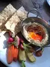 very pleasant location and relaxing atmosphere with an excellent service. we ordered an apetizer : smoked humus and a main course: zucchini lasagna and spicy peas noodles and both the taste and the presentation were impressive! Totally recommend it ,if you are in for a special vegan and vegetarian experience!