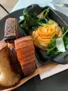 Food was beautifully presented and tasted really great. The atmosphere is great for a peaceful setting. A couple things though: -the food was very minimal portions...so be ready to spend money for a small portion but great flavorful food -I think they could’ve played some nice background music -service could’ve been a lot more attentive...we sat down for probably 10min before getting water and our server’s mood was very rushy, but also he didn’t have a welcoming persona I think overall the food was super flavorful and great, but small portions. Not sure I would pay the price again for what we got, but for being plant base I really do appreciate the efforts of spreading a plant base lifestyle.