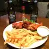 Perfectly cooked hot wings, good burger, strong drinks, and friendly service. Not the biggest menu, but a really nice variety of choices. The server and manager were exceptional - I wish I could remember their names.
