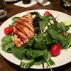 Had the hot wings and a salmon goat cheese salad. Wings were decent. Salad was heavy on the spinach and a bit sparse on the rest of the salad; rather uninspiring, but somewhat compensated by ample salmon and spinach portions.