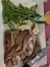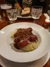 Great evening meal, generous portions, wonderful flavors. My spouse had the Pre-fix meal, that included salad, maincourse, and dessert. He had grilled scallops over Basmati rice and sauted green beans. I had the Flank steak, over mashed potatoes and sauted green beans. The flank steak was excellent lightly marinated in Dijon mustard. Generous portion of mashed potatoes and the sauted and grilled green beans were amazing. The bread was good and the Creme Brulee for dessert was delicious. I definitely recommend the food.