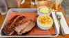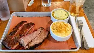 The ribs were really good. Nicely seasoned and oh so tender. The sauce selection is nice too. Cornbread and sides were tasty. A little salty but very flavorful. Would've given 4 stars but the brisket was under flavored and a little tough.