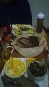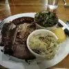 Had brisket and lamb chops. Both where tasting just great. The coleslaw was done.with vinegar. A perfect match.with the BBQ meet.