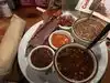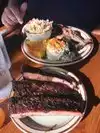 Overall the meal was very good. Service was exceptional! Started with the prime rib special- enough to feed 3 people with leftovers. Great smoky taste! It was ridiculously tender. My nephew had the ribs. They were tender and moist and we ate them without sauce. Get the pinto beans for one of your sides! My nephew raved about them and that's saying something since we're Mexican Americans and have eaten and made beans hundreds if not thousands of times. Pulled pork and sausage were just average. Pork had a weird sweet pineapple juice flavor. Sausage was a hot link - spicy, fatty and not really meaty tasting. Potato salad was chunky and firm with a mayonnaise and horseradish base. Not mustardy and sweet like I'm used to in the South. Dirty rice was spicy and not anything to special. Bbq sauces were weird. One wax runny with a sour vinegar flavor. The more tradition looking bbq sauce had a super strong paprika flavor that made it really spicy and too strong. Great atmosphere, food arrived hot and fresh.