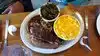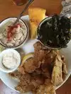 Large portions of soothing comfort food. I don't eat beef or pork so the menu was limited but I had an excellent smoked whole trout and tasted my partner's chicken. Both were perfect. The main dishes come with excellent corn bread and 2 sides. Sides are generous and yummy. The place is simple, family friendly, and tasty.
