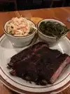 Stopped in here with hubby and friend before going to a concert on Tuesday night. Popped in here about 5:30 and it was empty, but it filled up very quickly, and the place was full by 6pm. The Tuesday special is their "rib plate" - we all opted for a 1/2 rack (6 huge ribs) each which came with 2 sides and a piece of cornbread. We opted for the baked beans, collard greens, broccoli salad and poblano mac and cheese - home runs on all of these. Cornbread was a little dry, but forgivable. We had multiple sauces to pick from - the hands down winner was the spicy Carolina mustard sauce. We all left fat and happy; I'm very excited to come back and try the brisket!