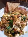 Meaty scrambler is a great value and wait staff is very fun and personable! So good we stopped two days in a row. Do not judge this by outside appearance!