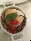 The halibut was ablsolutely delicious, flakey, delicately prepared and moist. The side was quinoa which was cooked deliciously prepared. The restaurant serves all fresh foods and has a bee hive on the premises. We could see the bee hive complex which houses 80,000 bees. Dessert was a Blue Dome and the presentation was chic and delicious - You will not regret. Frey took care of use from start to finish and the service was superior. The best time in Atlanta!!!
