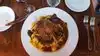 Had a gift certificate since 2013 so off we went. It’s in Point Loma which for us is a pain to get to and parking is street and sparse.?I had the swordfish which was ample and tasty, started with a salad. Good portion of salad. Could be split. My wife had the Caesar salad and filet with Gorgonzola sauce. She loved it.