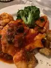My wife and I ate here twice on a recent trip to Point Loma. She had two different veal dishes (one of which I shared with a salad) and on another visit I had oysters on the half shell and eggplant parmigiana The veal dishes each had a nice side of pasta. Eggplant parmigiana is my favorite italian dish. In the past it has been served on a plate with a side of pasta and the parmesan and sauce on top of the eggplant. Mine was served in a bowl with the eggplant covered with a bowl full of sauce. The eggplant flavor was overwhelmed by the sauce unfortunately. But the two desserts we had, tiramusu and pecan ice cream, and the excellent wine list that was very fairly priced more than made up for it. We will be back. I will just order a different dish.