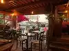 Small, cozy, indoor or simi outdoor restaurant colorful with friendly staff and very good food, everyone enjoyed their meal