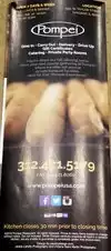 We were in the mood for pizza but being new to the area were having a hard time figuring what places had dining-in or were take-out only. We drove by Pompei and saw that their sign advertised "Pizza, Pasta..." etc., so we pulled in. One orders from a menu board and they bring the food to you. Notwithstanding the sign the menu board did not feature pizza, but the server said we could order it. We ended up ordering two "1/2 tray" pizzas. While the pizza was generally good, it was baked in a pan with a thicker more "bread" like crust. Maybe it's just me, but that's not what I want when I go out for pizza, I want something cooked in a pizza oven--directly on the hot oven base. As for the pizza itself, the cheese and sausage were good, the sauce could have used more spices. In all, it reminded us of a better quality frozen pizza cooked at home. Good, but not what we went "out for pizza" to get.