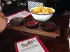 They have two different types of homemade sauce that are delicious! A mildly fruity habanero and a sweet mild red Chile sauce, wish we had one where I live!