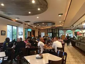 During our group's tour of local sights, we chose this large and modern restaurant for lunch. To clarify, this review is based on how our group of 40 people were handled. First, the wait staff was hard working and handled each table of ten quickly and were able to serve the meals quickly and as ordered. The salad was nice size with a tasty dressing. My lemon chicken with linguine was tasty and well portioned. Dessert and coffee was a nice finish to the meal.