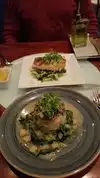 My husband and I visited her before going to a concert at the Tin Angel. As a vegetarian I really appreciated the selection they had. My husband and I both started with salads, I had a beet salad and my husband had a scallop salad, they were both delicious. At the the suggestion of the waitress my husband had Orata Fish dish and I had the sweet potato hazelnut ravioli.Both dinners were amazing and thoroughly enjoyed. The meal ended with a chocolate mousse dessert and a lemoncello!