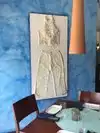 Visited couples o days during a 5 days visit on July and the place has a nice atmosphere and good food and appetizers. On the 2nd day we got sited on a room that connects the front and back main dinning rooms. The wall paper was very anoying and at times causing dizziness, a photo attached. They should place big paintings to break the hypnotics effect.