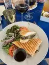 We sat outside, for a glass of wine and an early dinner. It was a great atmosphere! Our food was delicious. Our server was attentive. Before leaving, we took a quick tour inside to see the cool Mediterranean decor. What a great experience!