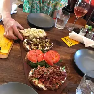 The food was fabulous but it was very loud inside the restaurant & very warm - too warm. Next time we will sit outside I think! The cauliflower was great & we ordered a variety bruschetta. The one with apple & brie was amazing! There’s an extensive wine & beer menu as well. Will definitely try it again!