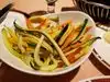 I don't eat meat. My companion eats nothing but. He said the prime rib was heaven. I've never seen such a humongous piece of meat. It came with mashed potatoes and a salad. I had the salad with bleu cheese dressing. At first glance, it looks small. Then, you start eating and the bottom never comes. The dressing is not runny or too thick and chunky. The server sprinkled fresh ground pepper on it. The fragrance was fresh and delicate, not overwhelming. I also like to sprinkle fresh lemon juice on my foods and did so. It was awesome. I also had the julienned veggies. It looked like different kinds of squash served steamed and in matchstick pieces. Very fresh, tender but not mushy. Just right. They put a basket of warm bread and butter on the table, which I couldn't stop eating. A great experience.