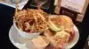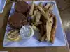 I had the cod and fries it was a nice size portion. The cod had a crispy crust not to seasoned but adding malt vinegar helped. The fries seem to be homemade but I'm not sure. My friend and I also shared a bowl of tortilla soup it was good. The waitress was there by herself so was moving very fast. After we said something to her she took a little more time instead of running to the table and walking off in haste. I would visit again.