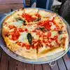 We dropped in and were seated promptly. We had the option of inside or patio. It was damp and cool outside but we opted for patio anyway. It was heated. There is a huge difference in the sound level between inside and the patio. The patio allowed for a more intimate conversation. I ordered the prosciutto and Parmesan pizza. My wife ordered the chicken lasagna. The pizza was good but not great. I would advise you to order a different style if you like traditional pizza (i.e.; tomato sauce). The lasagna was excellent. Nice selection of wine. Attentive service.
