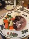 Had chicken lasagna, pasta with beef rib meat, pea soup and salad. All were good and served hot/cold and timely. A bit on the higher priced side. Call for a reservation or you will be taking your chances on getting a table.