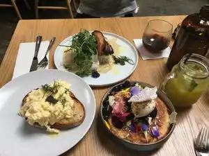 Long overdue review. Went here for brunch and it was just ok. Cute place, ok service, prices a tad high for what you get dungeness crab was just ok cauliflower dish so so coffee super good We are healthy eaters and this is not for us.