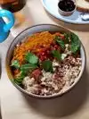We read this somewhat new restaurant was named a Top 50 in the U.S. by Bon Appetit magazine. Its an Aussie style breakfast -coffee cafe. I believe they close in the late afternoon.Besides having unique fantastic dishes,they have a cool interior too.I heard you better get reservations even Monday thru Friday to get in .That was true and its even more difficult to get in on a weekend.There were 4 of us and we found it to be very comfortable when seated .I did not think it was loud just normal conversation buzz of happy customers.We like to try acclaimed eateries around Portland. Proud Mary is truly unique with its breakfast/lunch menu. We got 4 different dishes: all were fantastic ! Love their types of coffee too.