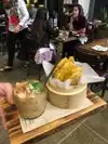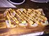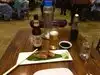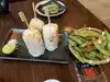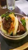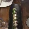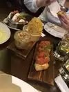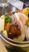 We sat outside as it's less noisy than inside. Very nice waiter who was helpful in guiding us for different things to eat. We ate Chinese buffalo bao rolls (good) with blue cheese (sounds strange but they were very nice), something strange that was called pizza and bore no resemblence to any pizza ever served, no crust, no cheese, no sauce, but was very good all the same, and sushi and sashimi. Then we finished off with an exotic dessert, bread pudding (it was like a kind of not very good brownie) topped with blue icecream that had no particular flavour but was interesting to look at. We were told that the food all came from different kitchens so that the waiter couldn't guarantee what would come out first or how long it would take, which was honest of him. As it happened everything came out very fast, within five minutes and with just a minute or two between each of the dishes we ordered.