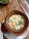 This is a "fusion" restaurant where the chef blends different cuisines... in this case, blending French and Japanese. They serve a "French Onion Miso Soup" that was really good... this is not a combination I would have ever thought about, but I ordered it and it was really good. Im not a pro chef, but from what I could tell, it was regular miso soup, but instead of tofu cubes, it was small cubes of French bread like you might have in traditional French Onion soup... then they added some long thin slices of the white onions and thin strands of the cheese used in traditional French onion soup. It was delicious. For the less adventurous, they also have traditional miso soup. I also ordered their special salmon roll, which was great. We also got a filet Mignon cooked medium rare... its served sliced on a bed of rice so you can eat with chopsticks... also excellent. This restaurant is in a partially opened mall, so we were eating "outside" but it was still covered, though a breeze can still pas through, making it enjoyable to sit out side and eat. Server was great and they had helpers to keep filling your drinks and clearing away empty plates... price was reasonable too I thought, for what it was... all that earns this place my coveted and rarely-issued FIVE circles.