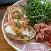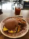 We sat at the cute counter area out front. It wasn’t too busy so thought we would give it a try. Waitress was attentive. I ordered the breakfast sandwich and was offered different options. However, I think I should have just ordered it the way it came with pimento cheese and sausage. I ordered bacon on it but didn’t realize it would be Canadian bacon. The egg and bacon kept falling off the sandwich, the bun was good. It came with fried potatoes which were excellent. But my mouth just had a really greasy feel by the time I was done with the meal. I didn’t care for the $15 Bloody Mary I ordered. It wasn’t really spicy and didn’t have any pepper, didn’t care for the flavor. My husband got the Eggs Benedict and he really enjoyed it. The hollandaise has a unique flavor. The salad that came with it was great and the dressing had a light, fresh, citrusy taste to it. Overall food was ok, wish I had chosen somewhere else tho.