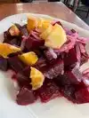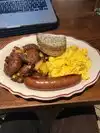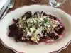 Great bean sausage soup but the beet salad was unique and large portion and delicious. Sitting close to fire felt warm too. Classy place for an airport!