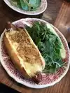 We had an hour to kill so we came here for breakfast. We split a bloody Mary and they split it for us in two glasses with pickles and olives each.. I had a breakfast sandwich which comes with the most unhealthy but the best tasting potatoes! So good! A healthier option would be the eggs Benedict with a side salad of arugula. It was cooked enough so the egg was not runny. I will come back.