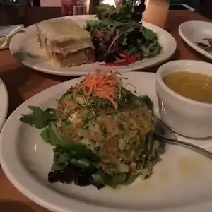 Okay so I did rate this restaurant before but again I went to enjoy the atmosphere, the space--no shoulder to shoulder and butt to butt--not even at the community bar. So this time I got a picture of the food. It's so good and fresh, and you get plenty. I dove into the plate before I thought to take a picture first, but please do get the true picture. Wonderful experience. Cozy enough to dine alone, or with friends and family. The proprietors have not gotten so "big" as not to care what you think of their place. Courteous, Quick, and reasonably priced. Try them because I will be going again soon.