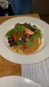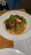First time at this place. My order was a simple salad but it was fresh, so I’m quite happy. Wife ordered sturgeon - really delicious so I added a piece of her sturgeon to my salad- awesome. Flower less soufflé to finish the dinner with vanilla ice cream on the side. We’re pretty impressed.