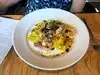 Just passing by and found the venue attractive. A warm summer day so the windows were wide open for brunch. Vegetable eggs Benedict with avo over superb hash brown bake. Chicken and mushroom crepes piled high. Fantastic flavors.