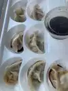 We had to send our pork dumplings back to get cooked because they were served to us Pink and the dough was still undercooked despite being pan fried. When we opened the Beef dumpling it was also way undercooked and unevenly cooked in the steamer basket between dumplings. Some were half brown, but most pink like the picture. This is a Health concern. The Owner is trying to claim It was fully cooked!? Brother, LOOK at the picture again that is UNDERCOOKED PINK MEAT!! Overall they were very bland and nothing was special about the taste. Go anywhere else and spend less for more flavor.