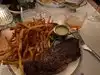 I was invited for dinner by one of my sons. Everything was like expected starting with the meat which was perfect. You boast being a Frebch restaurant but there I have my doubts. You're playing around with French words but it isn't reflected in some of your dishes. Your selection of sauces is rather limited (your peppercorn sauce has nothing to do with a "sauce au poivre"and was very disappointing and I wish I hadn't ordered it.) I would have expected a roquefort sauce with my leat but there wasn't any. And the side of watercress could have been improved with some vinaigrette). Now the deserts, one of my sons ordered a chocolate mousse (the French "mousse" means foam , but what he got looked like concrete and belonged to the building industry not a restaurant like yours). As to my desert, the floating island was delicious but not a floating island the French way. I don't know what the island was made of but it was not meringue. This being said, overall the five of us enjoyed our meals, but please, be honest and don't call your restaurant French and stop playing around with French words that don't make any sense and border ridicule.