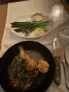Food was amazing! The seafood tower, French onion soup (a must) and the bread service (omg I didn’t know butter could be so tasty) the Dover fish was delicious. The burrata with flaky bread was also very good. The branzino was amazing, truly very flaky and flavorful. The Brussel sprouts were delicious. The asparagus was a little plain, but overall all of our dishes were winners. The only complain was our server was not very engaging he seemed bothered with our questions. We had a great time dispute that. Pricey so definitely a place for a special occasion