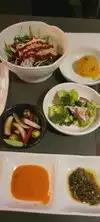 Recommended by my cousin who is a foodie and into the nightlife scene. Street parking was difficult even on a Monday night but garages are available for pay throughout LA. The ambience is spectacular. You enter from the sidewalk down a long outdoor corridor and find yourselves in the courtyard square between buildings on the inside of the block. Brightly lit, lots of activity between a few different restaurants. We got drinks at the bar while waiting for our table. We ordered typical Korean BBQ to share, all was fresh and tasty. Weather was perfect for outdoor seating and we enjoyed every minute of the evening. Great space for young adults to gather, large groups for family or friends.