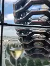 We were in NYC for the first time and had to visit Hudson Yards, the Vessel and the High Line. The vessel required a free timed pass. Since our time was an hour out we decided to get a bite to eat and weren't disappointed with Queensyard. Located inside the Hudson Yards, this is a contemporary, elegant lunch, dinner experience. We arrived around 2:45, just missing the lunch time which would have afforded us a table by the windows. That area was closed down until the dinner hour. However we sat on a raised area of the restaurant and still had an amazing view of the vessel and the Hudson River. Milos was our server who was both friendly and attentive. We ordered the Shishito peppers and had two glasses each of the Pino Grigio. A perfect combination while we waited our turn at the Vessel. A little pricey, about $140 all in with tip, but so worth it. Make this part of your NYC experience.