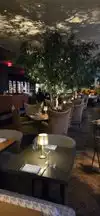 The restaurant is surrounded within a beautiful environment of the fantastic cooper sculpture and the amazing mall. The host & hostess seem to have a confusion of the menu choices - they should be describing the menus as our Michelin rated dinner menu and simply our bar menu with a light fare . The host made it much more complicated And gave the impression we could sit on the fancy restaurant side and still order a burger , but that was not the case. However , we ate on the fancy side and than ate on the bar side . Alvin was our waiter who was excellent and was very polite. His service was excellent , but it was evident that he was loosing table because the host was not making himself clear about what menu was appropriate for each side . The host would sit folks down and than they would leave to go to the bar side . I would recommend you open up the entire restaurant to hamburgers as well - the restaurant would be packed all the time . Alvin was a triple AAA waiter and offered some great suggestions as far as food choices . We had a very good meal , I was disappointed in the hazelnut sponge cake dessert - it is a unique concept but The cake was dry and the center ice cream or pudding was tasty , but would have been delicious melted down and drizzled on the sponge cake with the cookie crumbs on top All & all the restaurant is very cool and is an excellent location , however I would recommend some slight changes to the menu - it’s either the Michelin menu or the bar menu and the restaurant side should take reservations if they are trying to keep the restaurant more exclusive Take some advice loving advice Make all of your staff go Out of there way to be really nice - place the pretenses aside . You get more with honey than you do with spice Seafood parfait was excellent Tuna appetizer delicious Watermelon Burrata was perfectly light ! We had the Burgers on the bar side - excellent - juicy and very tasty I would also suggest a truffle French fry ! Feel free to contact me to review your restraint again to see if there are any improvements
