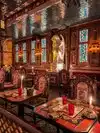 The restaurant is very dark with a red undertone. It is an old church that they moved. Altars are replaced with Satanic figures. If you are a person of faith your hair just might stand up. Made it difficult to enjoy the food that was actually pretty good but very pricey. I literally just wanted to run out of there I was so creeped out.