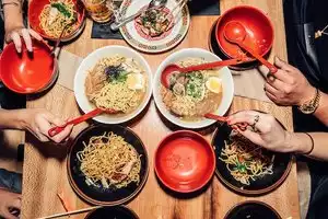 The atmosphere is nice and has a hipster vibe. This was something we thought would be different and unique to try. The chicken wings were amazing as were the dumplings. I got the signiture raman bowl which was just okay. At $16 a pop i expected a little more. Drinks were very good. for 3 people we spent $100
