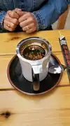 Such a hip, fun vibe in this place. Menu is very full, everything you would want. Staff goes out of their way to explain and make a joyful experience! Peppers were so tasty. Loved the variety we got to taste. Could easily get two meals out of this. Nice variety of canned teas and fresh!